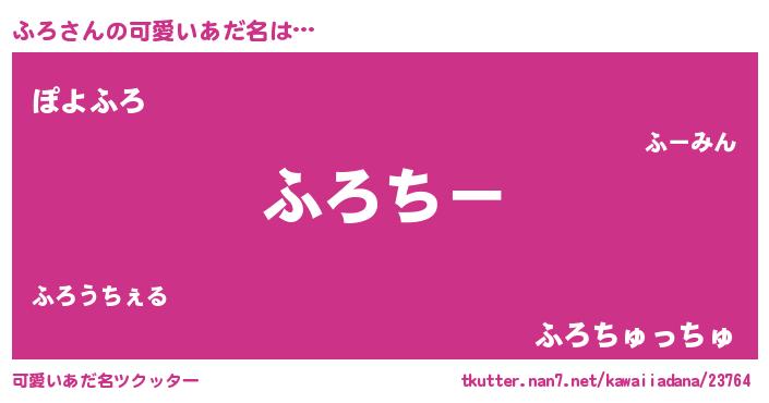 | 女子向けラノベタイトル風あだ名 | 『ふろの雑貨屋さん』『死神ふろの再婚』 |