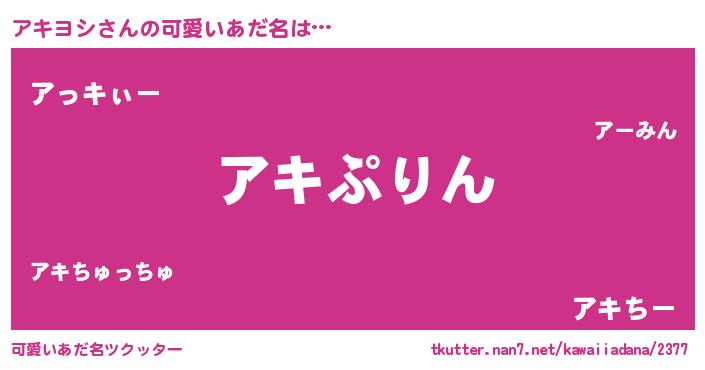 | ヒーロー風カッコイイあだ名 | 『炎刃騎士アキ』『ウルトラアキヨシマン』 |