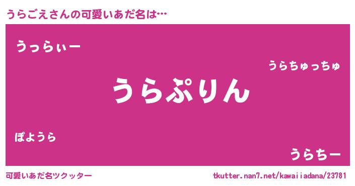 | 男性向けラノベタイトル風あだ名 | 『転生したらうらごえだった件』 |