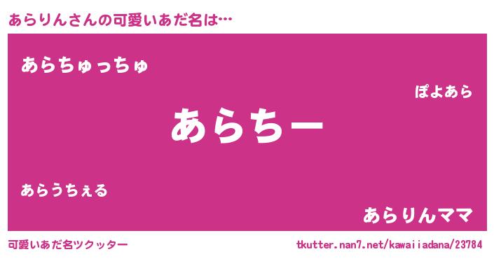 | ヒーロー風カッコイイあだ名 | 『ウルトラあらりんマン』『ネオアラリン』 |