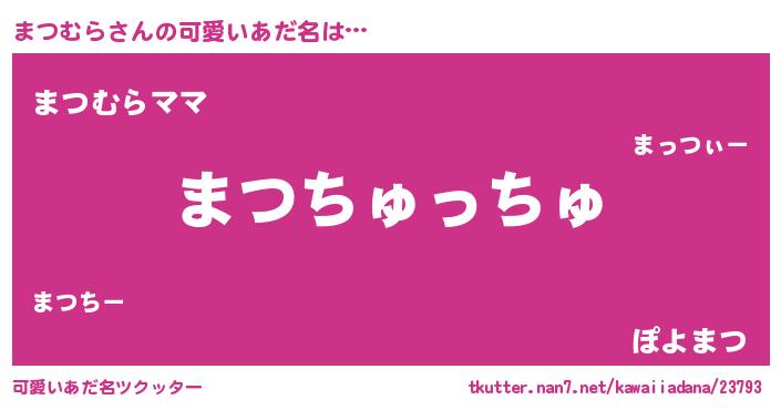 | ヒーロー風カッコイイあだ名 | 『愛の使者まつむら』『ネオマツムラ』 |