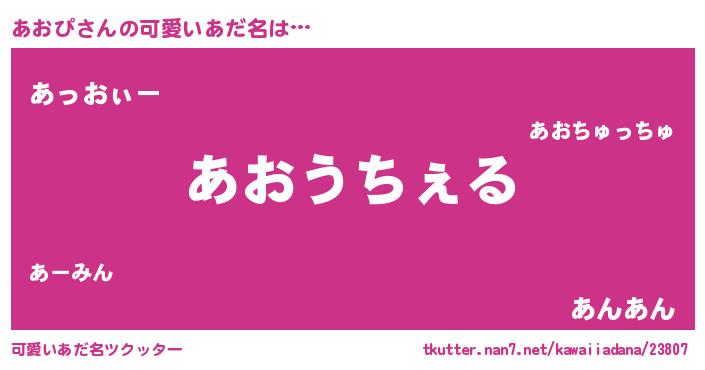 | 男性向けラノベタイトル風あだ名 | 『Re:あおぴから始める異世界生活』 |