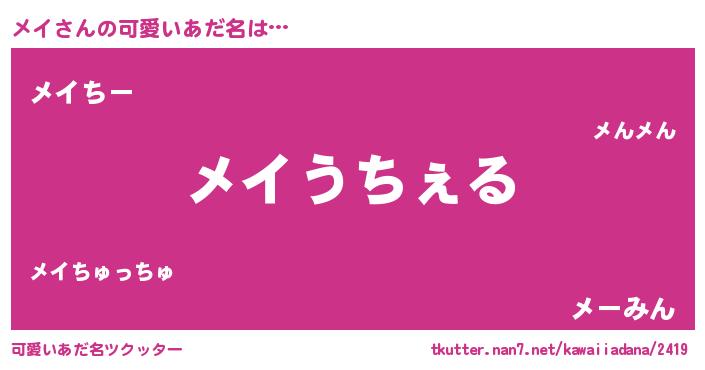 | 意味不明あだ名 | 『自称メイ』『メイフォーエバー』 |