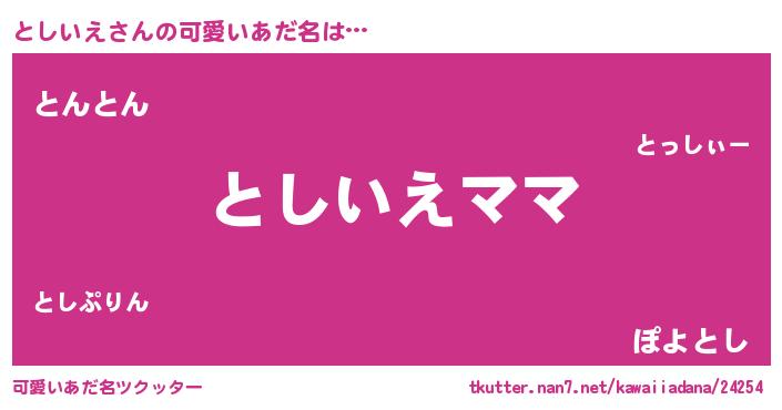 | 意味不明あだ名 | 『永久保存としいえ』『ペロリンとしいえ』 |