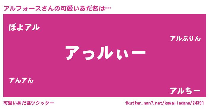 | 女子向けラノベタイトル風あだ名 | 『アルフォースは平凡を望む』 |