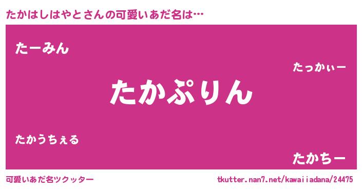 | 男性向けラノベタイトル風あだ名 | 『たかはしはやと~年齢イコール彼女いない歴の魔法使い~』 |
