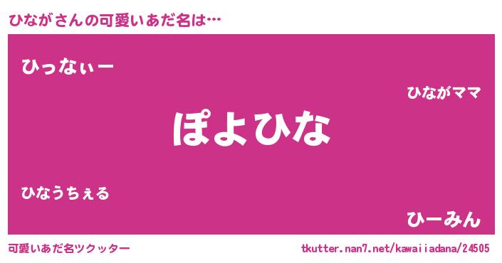| ヘコむあだ名 | 『ひな太郎』『ひなが(苦笑)』 |
