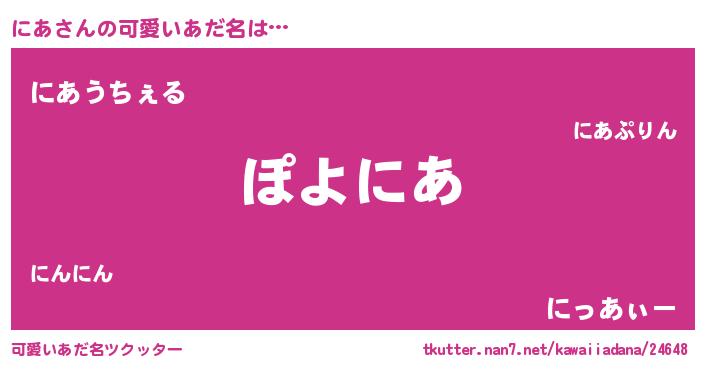 | 意味不明あだ名 | 『住所不定無職にあ(47歳)』『自称にあ』 |