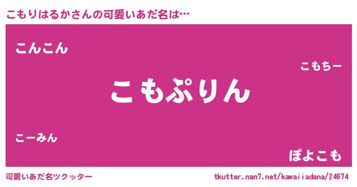 | 恥ずかしいあだ名 | 『プリティーこもりはるか』『こもっちょ』 |