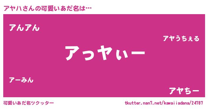 | ヒーロー風カッコイイあだ名 | 『幻影騎士アヤ』『スーパーアヤハ』 |