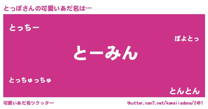 | 恥ずかしいあだ名 | 『とっっちょ』『プリティーとっぽ』 |