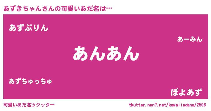 | ヒーロー風カッコイイあだ名 | 『スーパーアズキチャン』『仮面アズダー』 |