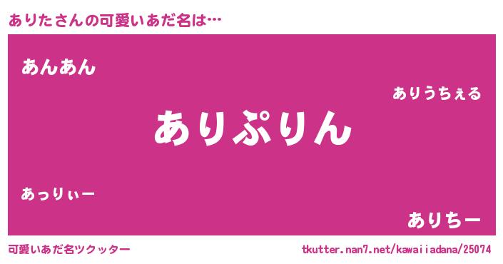 | 意味不明あだ名 | 『なめこ科ありた属』『ペロリンありた』 |