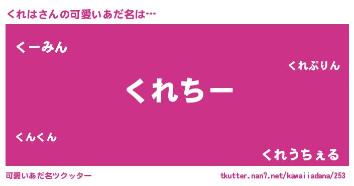 | 意味不明あだ名 | 『くれはフォーエバー』『自称くれは』 |