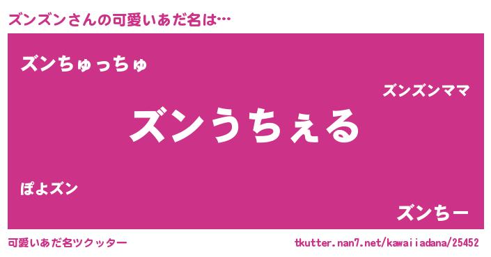 | 男性向けラノベタイトル風あだ名 | 『Re:ズンズンから始める異世界生活』 |