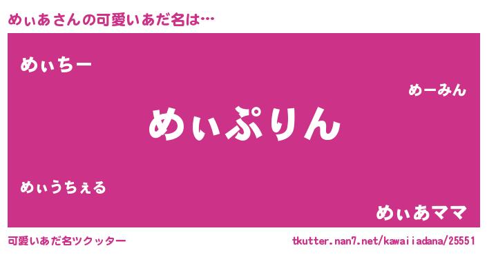 | 意味不明あだ名 | 『ヨモギ科めぃあ属』『永久保存めぃあ』 |
