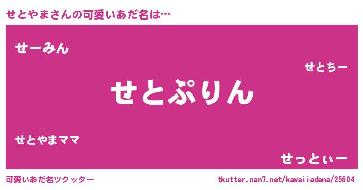 | ヒーロー風カッコイイあだ名 | 『天弓騎士セト』『ウルトラせとやまマン』 |