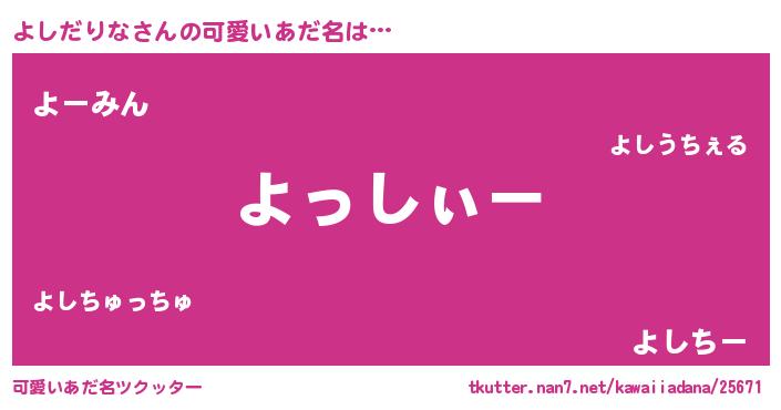 | ヒーロー風カッコイイあだ名 | 『天弓騎士ヨシ』『超時空戦士ヨシダリナ』 |
