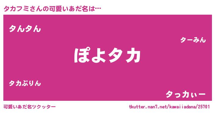 | 恥ずかしいあだ名 | 『プリティータカフミ』『タカリンリン』 |