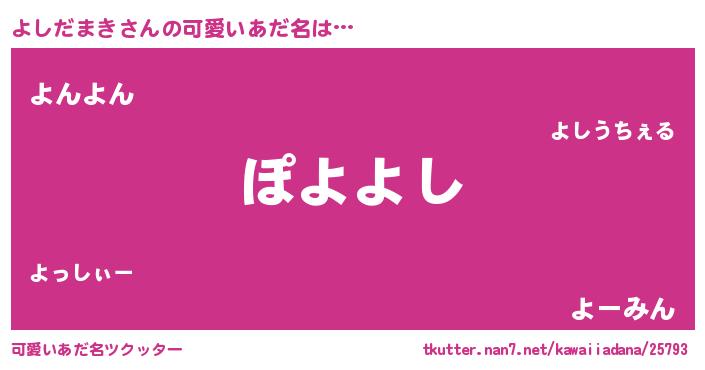 | 恥ずかしいあだ名 | 『プリティーよしだまき』『ヨシリンリン』 |