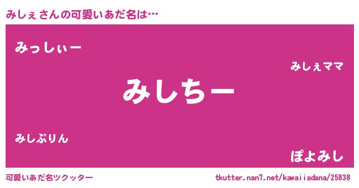| 女子向けラノベタイトル風あだ名 | 『みしぇの婚約者』『みしぇは平凡を望む』 |