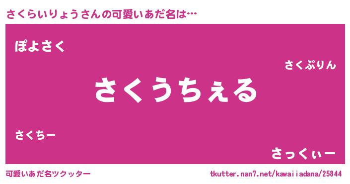 | 意味不明あだ名 | 『自称さくらいりょう』 |