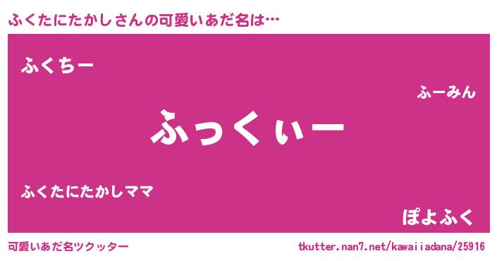 | 男性向けラノベタイトル風あだ名 | 『ふくたにたかしの嫁は女の子じゃないと思った?』 |