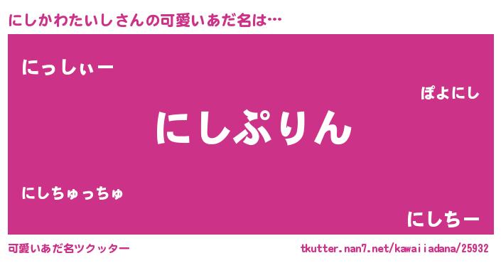 | ヘコむあだ名 | 『にしぷりん』『なまこ酢』 |