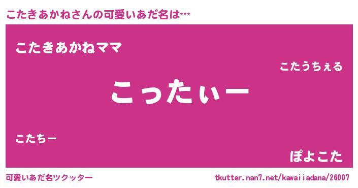 | ヘコむあだ名 | 『こた太郎』『こたきあかね(苦笑)』 |