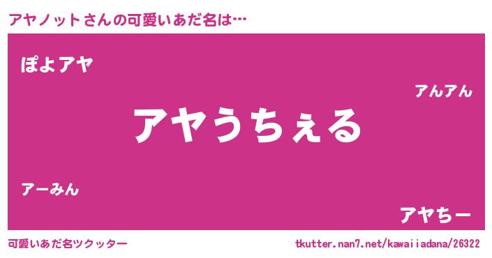 | 男性向けラノベタイトル風あだ名 | 『Re:アヤノットから始める異世界生活』 |
