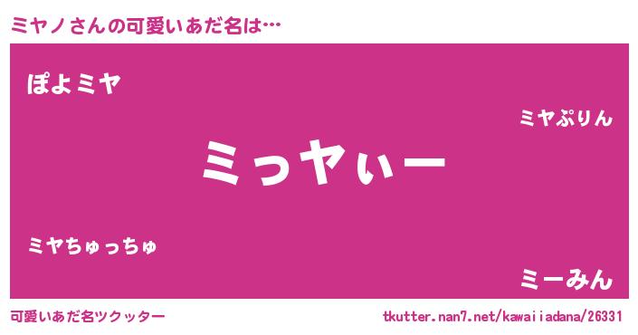 | 男性向けラノベタイトル風あだ名 | 『ダンジョンにミヤノを求めるのは間違っているだろうか』 |