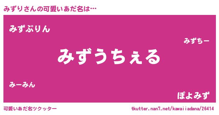 | 女子向けラノベタイトル風あだ名 | 『みずりなんてお断りですっ。』 |