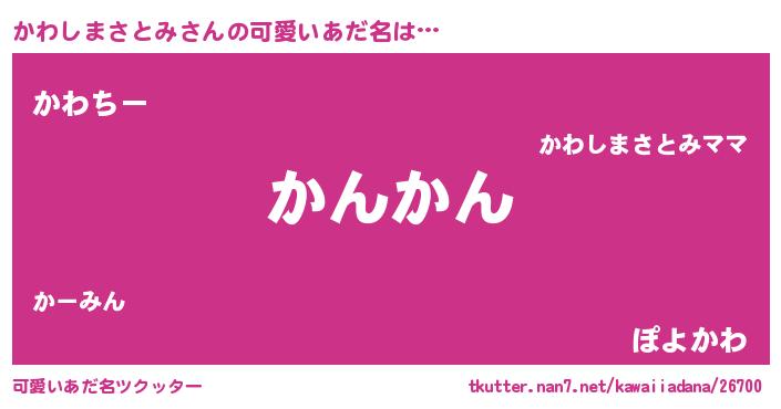 | 恥ずかしいあだ名 | 『プリティーかわしまさとみ』『かわちん』 |