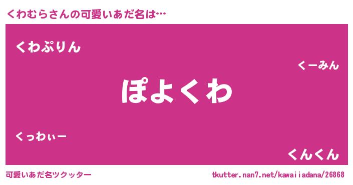 | 男性向けラノベタイトル風あだ名 | 『魔弾の王とくわむら』『くわむらの憂鬱』 |