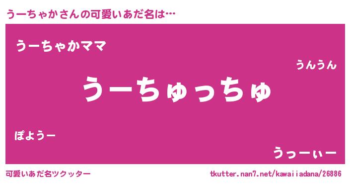 | ヘコむあだ名 | 『うーちゃか(笑)』『うーぷりん』 |