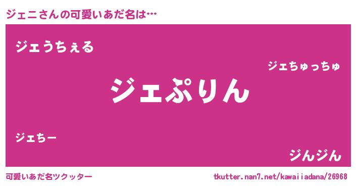 | 男性向けラノベタイトル風あだ名 | 『ジェニスレイヤー』『ジェニの憂鬱』 |