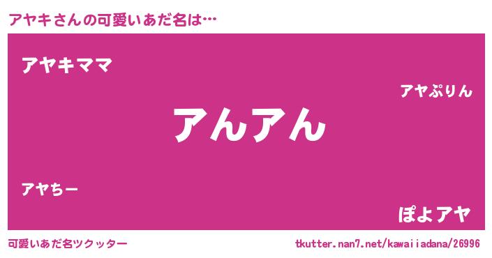 | ファンタジー風あだ名 | 『アヤフェル』『アヤディッシュ』 |
