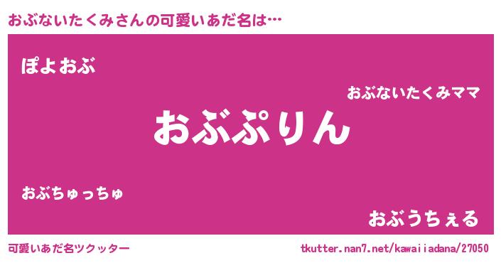 | 恥ずかしいあだ名 | 『オブナイタクミデラックス』『おぶちん』 |