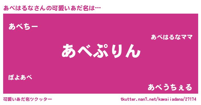 | 男性向けラノベタイトル風あだ名 | 『アベハルナスレイヤー』 |