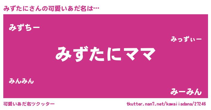 | 男性向けラノベタイトル風あだ名 | 『みずたにという概念が存在しない退屈な世界 』 |