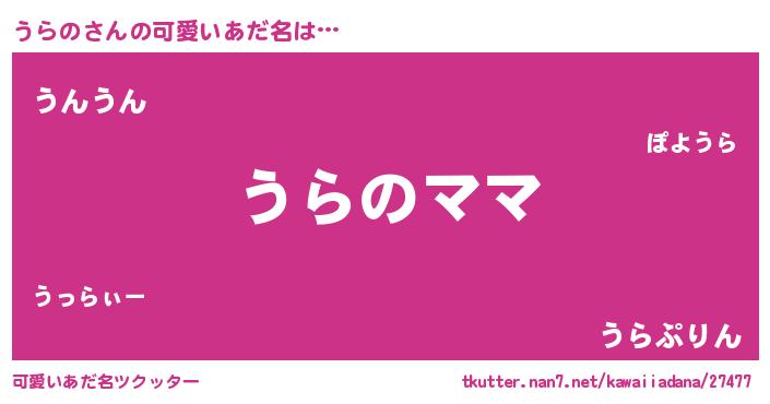 | 男性向けラノベタイトル風あだ名 | 『うらのに滅ぼされるだけの簡単なお仕事です』 |