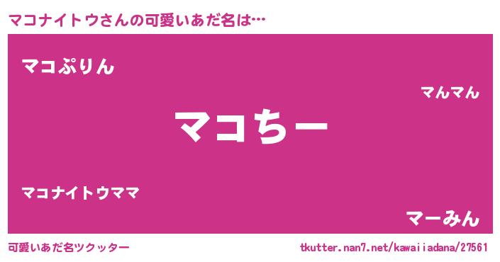 | 欧米人風あだ名 | 『マコナイトウクリステル』 |