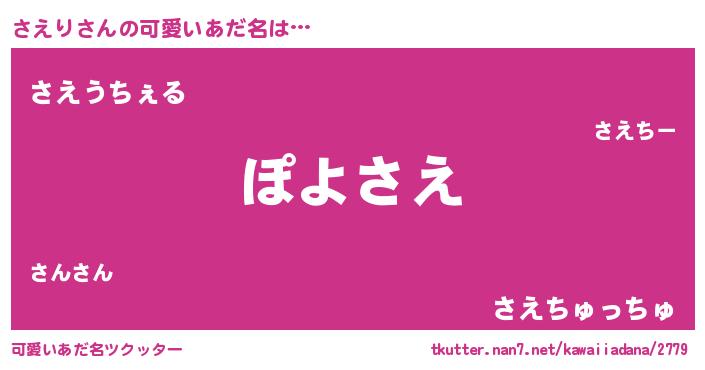 | 恥ずかしいあだ名 | 『サエリデラックス』『さえっちょ』 |