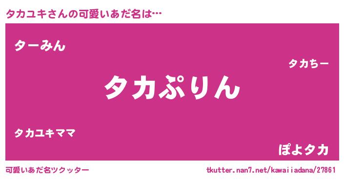 | 女子向けラノベタイトル風あだ名 | 『タカユキの玉の輿計画!』 |