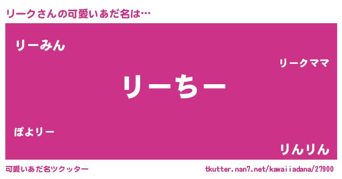 | 意味不明あだ名 | 『リークフォーエバー』『ペロリンリーク』 |