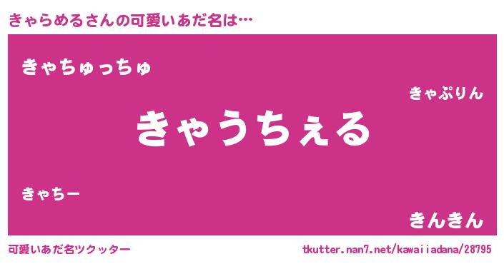| 意味不明あだ名 | 『自称きゃらめる』『ペロリンきゃらめる』 |