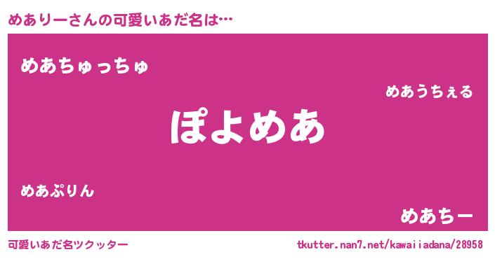 | 恥ずかしいあだ名 | 『ボンバーヘッドめあ』『めあっちょ』 |