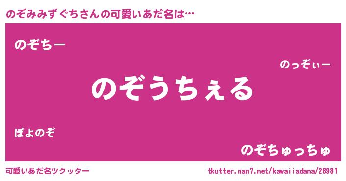 | ヘコむあだ名 | 『酢こんぶ』『のぞを』『のぞふぇ~』 |