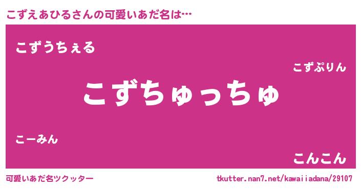 | ヘコむあだ名 | 『こずっふぃ~』『こずえあひる(爆)』 |