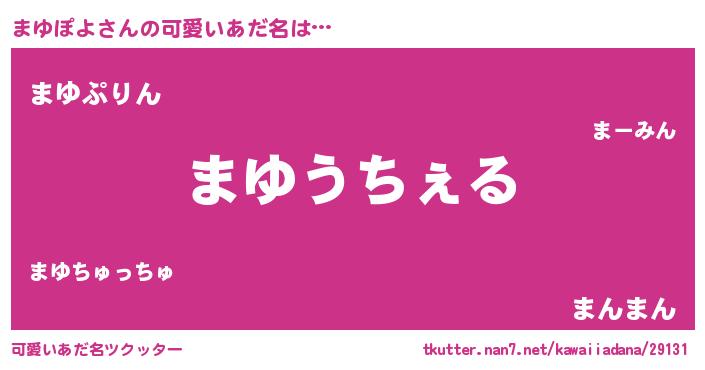| 男性向けラノベタイトル風あだ名 | 『Re:まゆぽよから始める異世界生活』 |